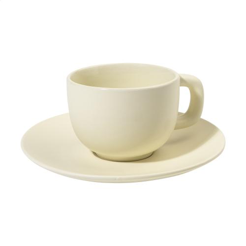 High quality ceramic cappuccino cup set with 2 cups and saucers. With matte outside and glossy inside finish. 200 ml. In kraft paper box.