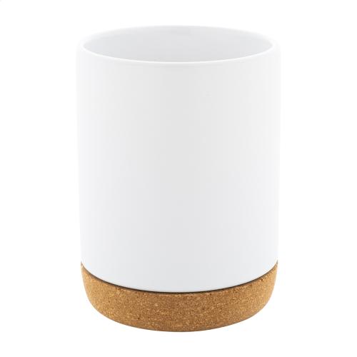 High quality ceramic mug with natural cork base. With matte outside and glossy inside finish. 280 ml. In kraft paper box.