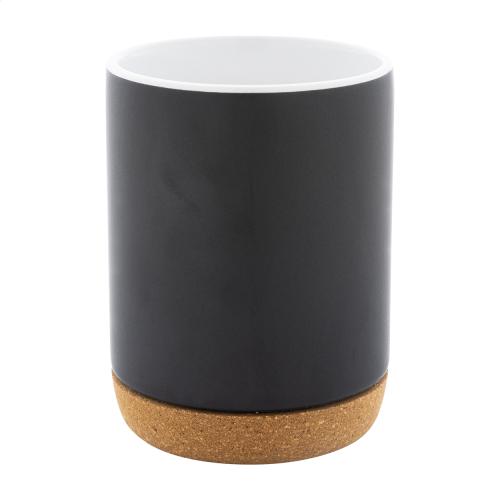 High quality ceramic mug with natural cork base. With matte outside and glossy inside finish. 280 ml. In kraft paper box.