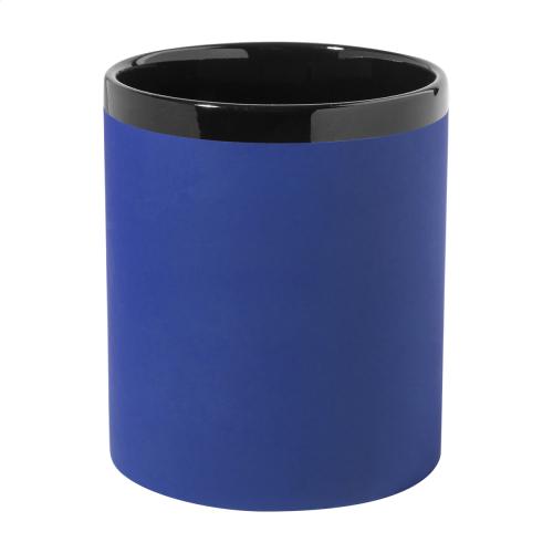 Ceramic mug with soft-touch rubberized finish and black inside and rim, 300 ml. With special coating for engraving, the engraved logo is matching the inside colour. In kraft paper box.