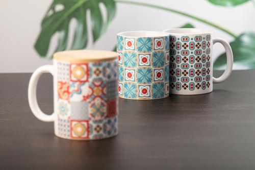 Dishwasher safe, white ceramic mug with bamboo lid for sublimation printing, 300 ml. In kraft paper box.