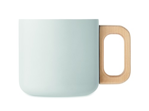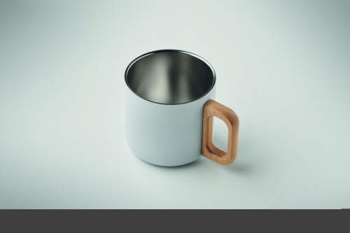 Double wall mug in recycled stainless steel (90% recycled stainless steel and 10% stainless steel) mug with wooden handle. Capacity: 350 ml.