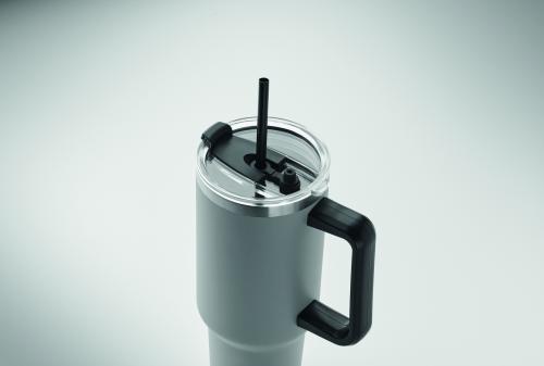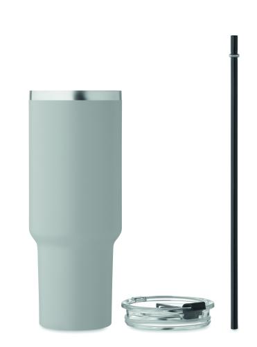 Double wall vacuum insulated recycled stainless steel tumbler (90% recycled stainless and 10% stainless steel) with straw lid including PE straw. Capacity 1200 ml.