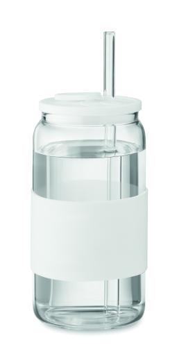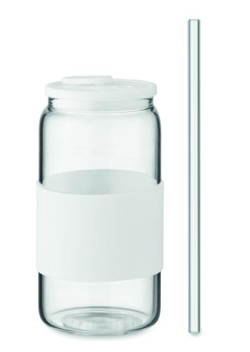 High borosilicate glass tumbler with silicone lid and grip. Includes borosilicate glass straw. Capacity : 550 ml.