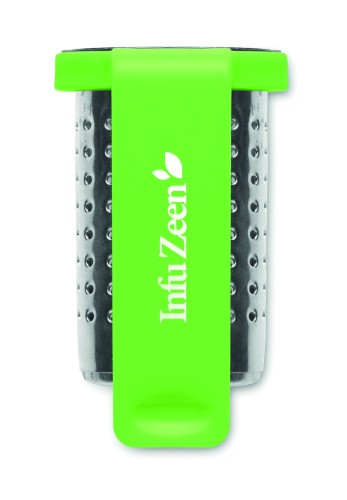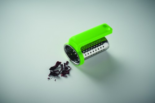 Tea infuser for loose leaf tea in stainless steel with PP hook.
