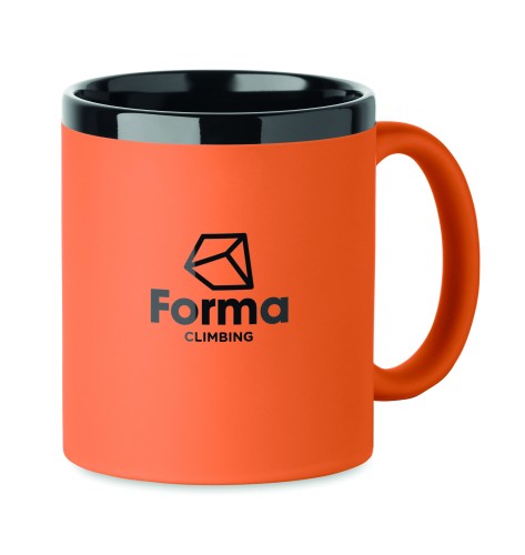 Ceramic mug with soft touch coating and black inside/rim. Suitable for engraving. Capacity: 300 ml. Individually packed in white carton box.
