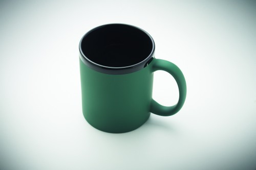 Ceramic mug with soft touch coating and black inside/rim. Suitable for engraving. Capacity: 300 ml. Individually packed in white carton box.