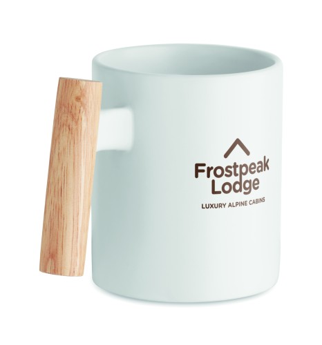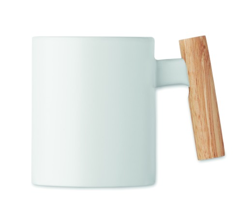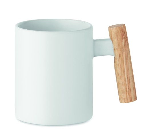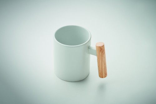 Ceramic mug with wooden handle. Capacity: 320ml. Individual packed in white carton box. Hand wash only.