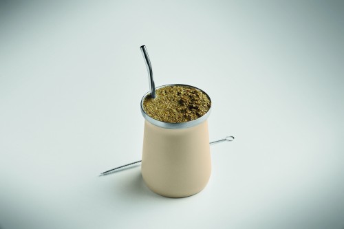 Double wall Yerba mate cup in recycled stainless steel (90% recycled stainless and 10% stainless steel). Includes stainless steel bombilla straw and cleaning brush. Capacity : 240 ml.