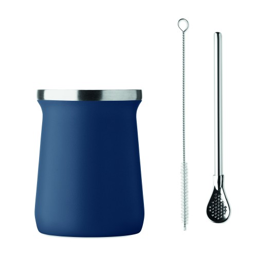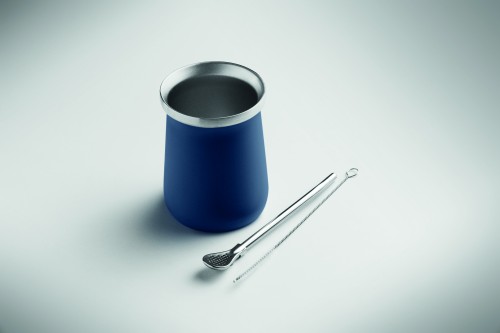 Double wall Yerba mate cup in recycled stainless steel (90% recycled stainless and 10% stainless steel). Includes stainless steel bombilla straw and cleaning brush. Capacity : 240 ml.