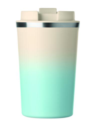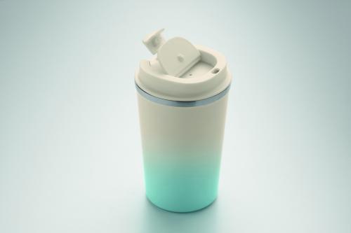Double wall recycled stainless steel (90 % recycled stainless steel and 10% stainless steel) tumbler with PP lid. Capacity: 350 ml. Leak free.