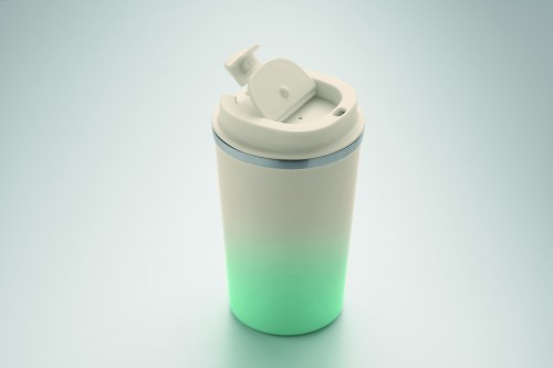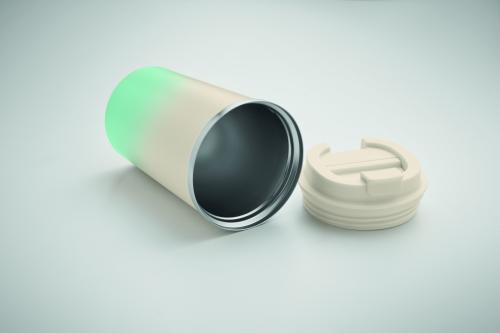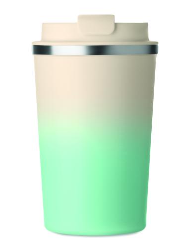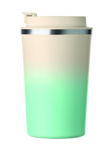 Double wall recycled stainless steel (90 % recycled stainless steel and 10% stainless steel) tumbler with PP lid. Capacity: 350 ml. Leak free.