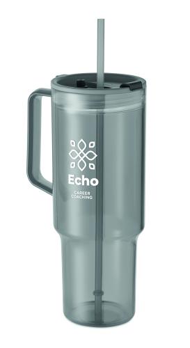 Tumbler in RPET with straw lid including PP straw. Capacity: 1200 ml.