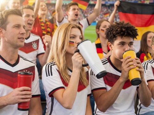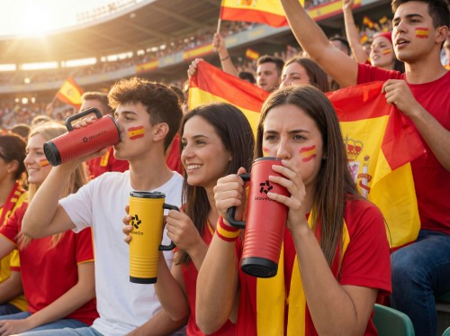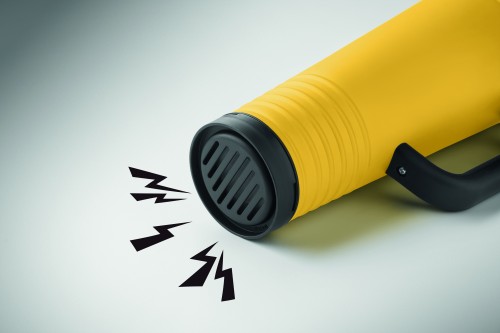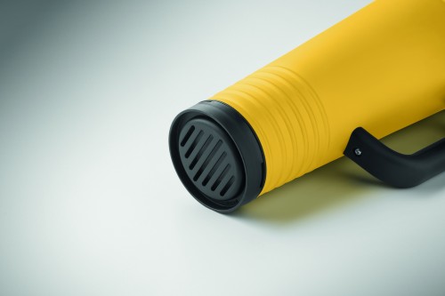 Double wall cheering tumbler in stainless steel outside and PP inside. PS lid with built-in noise-making horn feature. Capacity 700 ml.