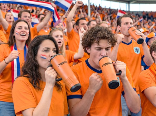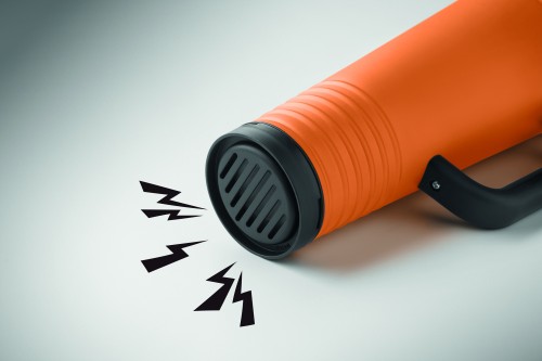 Double wall cheering tumbler in stainless steel outside and PP inside. PS lid with built-in noise-making horn feature. Capacity 700 ml.