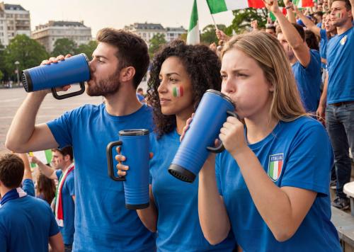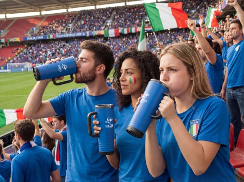 Double wall cheering tumbler in stainless steel outside and PP inside. PS lid with built-in noise-making horn feature. Capacity 700 ml.