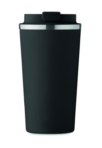 Double wall in recycled stainless steel (90% recycled stainless steel and 10% stainless steel) tumbler with PP lid. Capacity: 510 ml. Leak free.