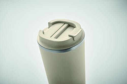 Double wall in recycled stainless steel (90% recycled stainless steel and 10% stainless steel) tumbler with PP lid. Capacity: 510 ml. Leak free.