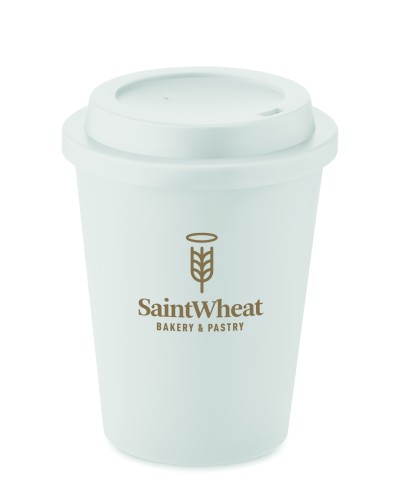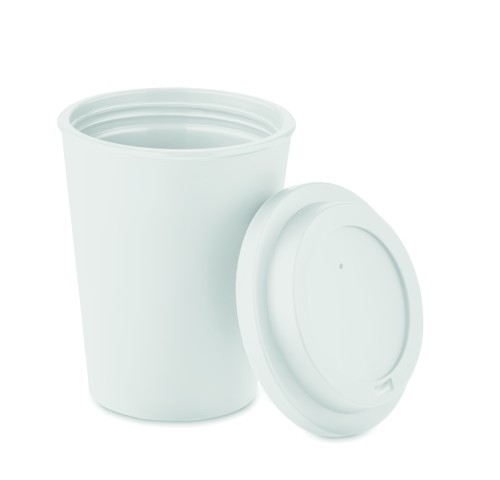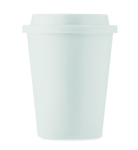 Double wall tumbler with drinking mouthpiece lid in PP. Capacity: 300 ml.