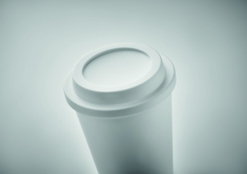 Double wall tumbler in PP with lid. Capacity: 300 ml.
