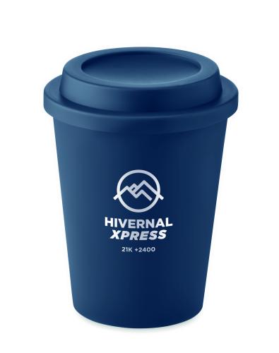 Double wall tumbler in PP with lid. Capacity: 300 ml.