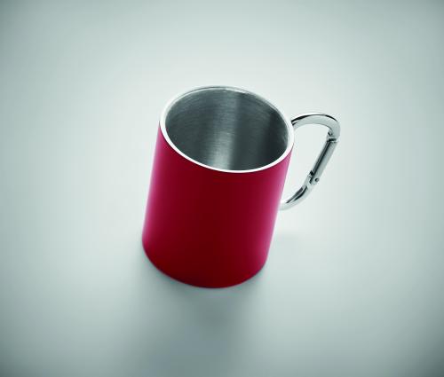 Double wall stainless steel mug, with carabiner handle. Capacity: 300 ml.