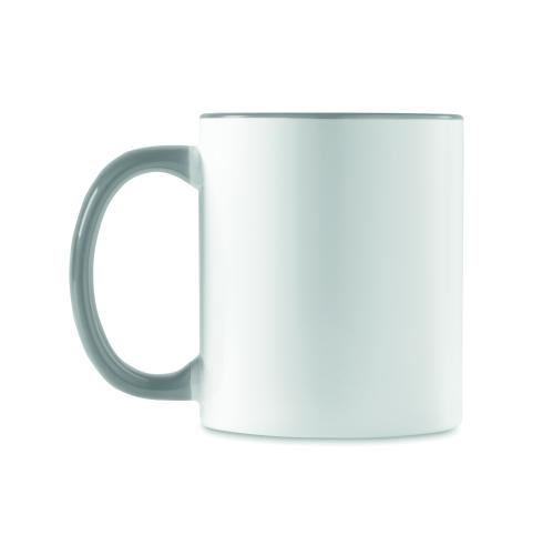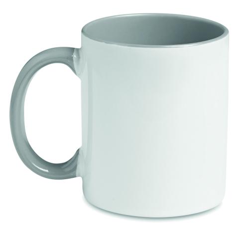 Ceramic mug of 300 ml capacity with special coating for sublimation with coloured handle and inside. Individual packing in white carton box.