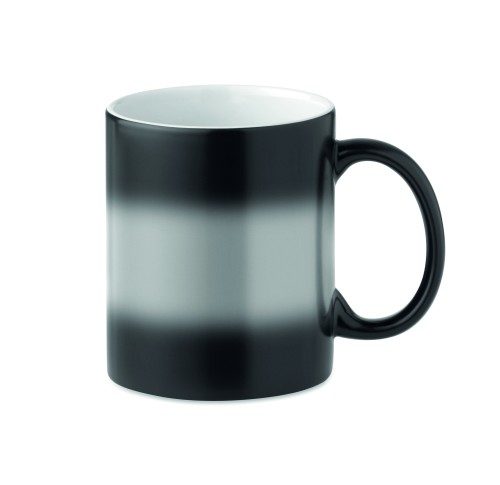 Ceramic mug of 300 ml capacity with special coating for sublimation. Mug changes colour to your personalized printing when pouring (at least) 50°C liquid into the mug. Individual packing in white carton box.