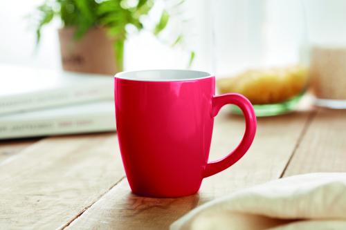 Ceramic coloured mug of 290 ml capacity. Presented in an individual corrugated carton gift box.