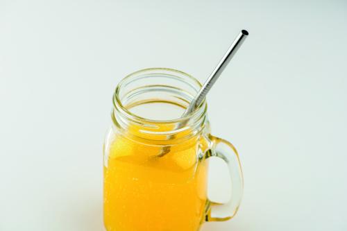 Set of 1 reusable stainless steel drinking straws and cleaning brush in microfiber pouch.