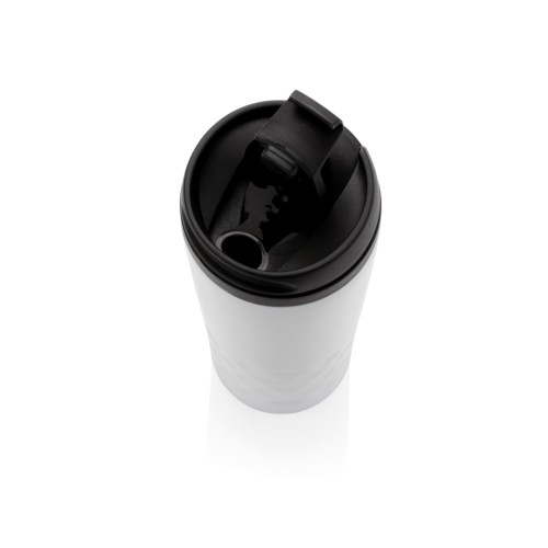 Fashionable stainless steel tumbler with geometric details. Inner body is made out of plastic. Handwash only. Content 300ml.