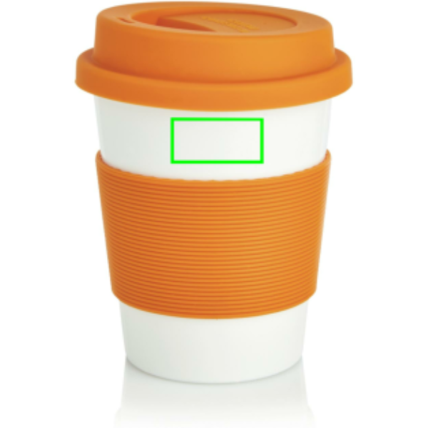 350ml tumbler with silicone grip and lid. Manufactured from 100% plant material (PLA). BPA free and dishwasher proof.