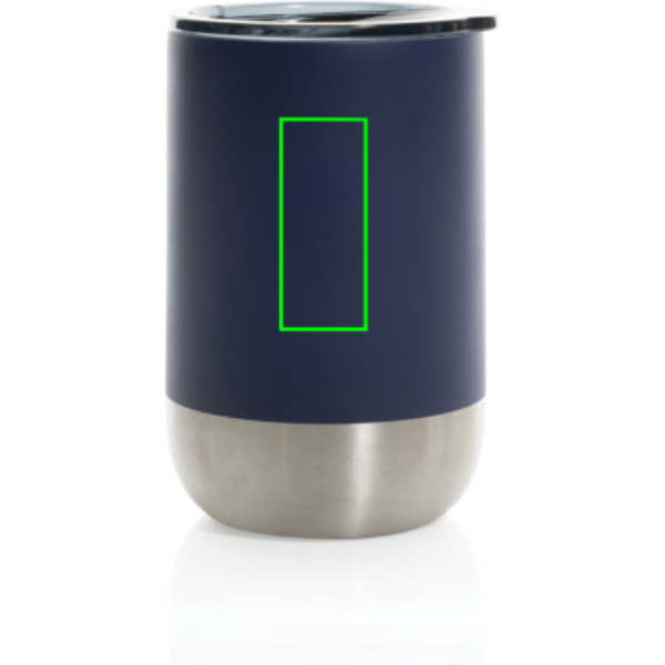 This beautiful tumbler features a recycled stainless steel construction with vacuum insulation to keep drinks warm for up to 3 hours or cold for up to 6 hours. Its trendy execution with stainless steel bottom accent makes it a true eye catcher. The lid with slide open function ensures a smooth drinking experience. Made with RCS (Recycled Claim Standard) certified recycled materials. RCS certification ensures a completely certified supply chain of the recycled materials. Total recycled content: 76% based on total item weight. BPA free. Capacity 360ml. Including FSC®-certified kraft packaging.