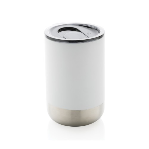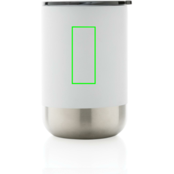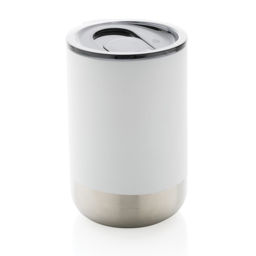 This beautiful tumbler features a recycled stainless steel construction with vacuum insulation to keep drinks warm for up to 3 hours or cold for up to 6 hours. Its trendy execution with stainless steel bottom accent makes it a true eye catcher. The lid with slide open function ensures a smooth drinking experience. Made with RCS (Recycled Claim Standard) certified recycled materials. RCS certification ensures a completely certified supply chain of the recycled materials. Total recycled content: 76% based on total item weight. BPA free. Capacity 360ml. Including FSC®-certified kraft packaging.