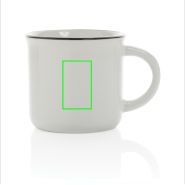 This mug is made from ceramic for durability and lasting use. The mug has a vintage look and features a curved handle for easy grip. Dishwasher safe in accordance with EN12875-1 (at least 125 washing cycles) for all decoration methods. Packed in gift box. Capacity 280ml.