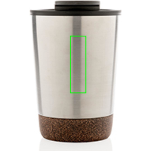 Start your day with your favourite beverage in this double wall coffee mug with recycled plastic inner and unique cork detail. Keeps your drinks warm for up to 3h and cold up to 6h. Made with GRS certified recycled materials. The inner is made from 100% GRS certified PP. GRS certification ensures a completely certified supply chain of the recycled materials. Total recycled content: 52% based on total item weight. BPA free. Capacity 300ml. Including FSC®-certified kraft packaging.