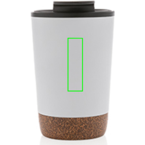 Start your day with your favourite beverage in this double wall coffee mug with recycled plastic inner and unique cork detail. Keeps your drinks warm for up to 3h and cold up to 6h. Made with GRS certified recycled materials. The inner is made from 100% GRS certified PP. GRS certification ensures a completely certified supply chain of the recycled materials. Total recycled content: 52% based on total item weight. BPA free. Capacity 300ml. Including FSC®-certified kraft packaging.