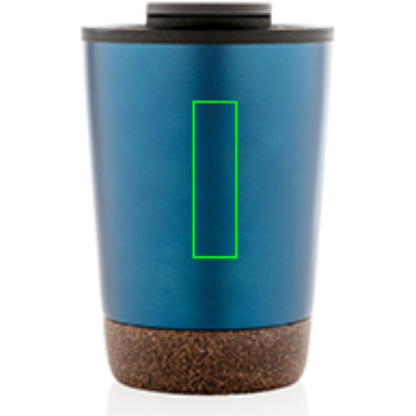 Start your day with your favourite beverage in this double wall coffee mug with recycled plastic inner and unique cork detail. Keeps your drinks warm for up to 3h and cold up to 6h. Made with GRS certified recycled materials. The inner is made from 100% GRS certified PP. GRS certification ensures a completely certified supply chain of the recycled materials. Total recycled content: 52% based on total item weight. BPA free. Capacity 300ml. Including FSC®-certified kraft packaging.