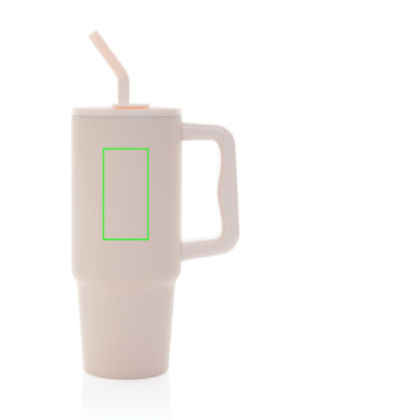 Experience the spacious yet conveniently portable embrace of our generously sized tumbler – not too big, not too small. Its comfort-grip handle and slim base make it a perfect fit for most cup holders, ensuring you stay refreshed whether you're enduring a long day of meetings, conquering a rowing class, or embarking on a trip out of town. Crafted from durable recycled stainless steel, this 900 ml. tumbler rises to the hydration challenge. This double-walled, vacuum-insulated tumbler comes complete with a spill secure lid, recycled steel straw, and a silicone straw tip. The screw-on lid boasts a dual function, offering a convenient drinking spout or the option to use a straw. We recommend handwash. RCS certification ensures a completely certified supply chain of the recycled materials. Total recycled content: 70% based on total item weight. BPA free.