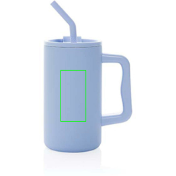 Indulge in the robust embrace of our generously sized 800ml mug – substantial and perfect for on your office desk. Its sturdy handle and broad base make it an ideal companion for your daily water intake in the office. Crafted from durable recycled stainless steel, this mug is designed to meet your hydration needs.This hefty, double-walled, vacuum-insulated mug comes equipped with a secure lid, straw, and a silicone straw tip. Versatile enough for both piping hot and ice-cold beverages, the screw-on lid offers a dual function – a convenient drinking spout or the option to use a straw. For optimal care, we recommend handwashing this substantial mug
