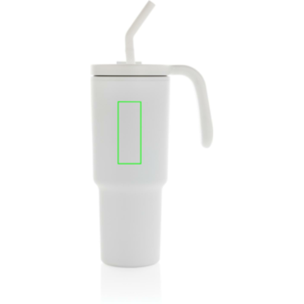 The most popular mug now suitable for perfect 360 round body printing. A 900ml tumbler designed for eco-friendly hydration, made with recycled materials. Whether you're working, exercising, or travelling, this tumbler is your perfect companion. The innovative lid features a rotating cap with three positions: a spill-resistant straw opening, a sipping spout, and a fully sealed lid. The ergonomic handle with comfort-grip inserts ensures easy carrying, and the slim base fits most car cup holders. Hand wash only. BPA-free. Capacity: 900ml. Includes FSC®-certified kraft gift packaging. Total recycled content: 36% based on total item weight.