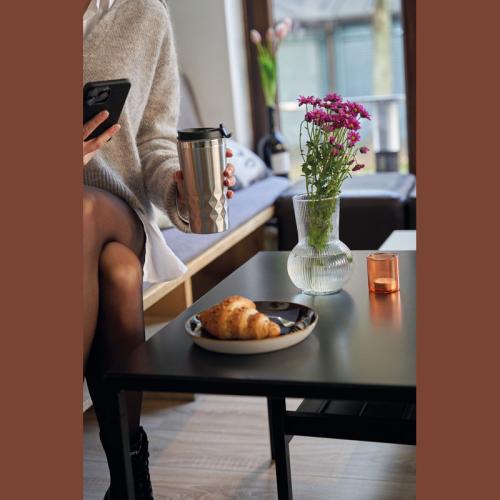 Double walled, leak-proof, non-slip thermo mug made of stainless steel with a capacity of 400 ml.