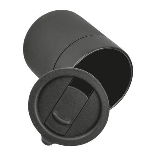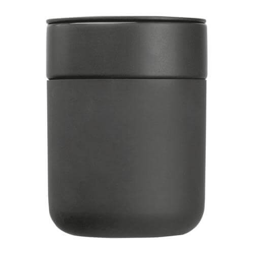 Ceramic drinking cup with silicone sleeve, drinking slide in the lid and 340ml capacity.