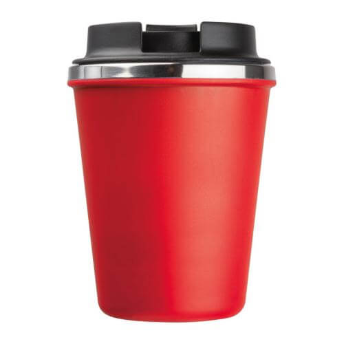 Double-walled drinking cup with a stainless steel interior and a recycled plastic exterior. Filling capacity of 350ml and a leak-proof screw cap with lockable drinking opening.