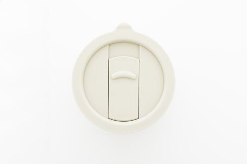 Silicone covered ceramic travel cup with PP plastic drinking lid. 300 ml.