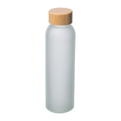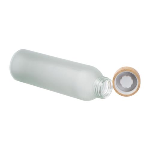 Frosted glass bottle with bamboo lid and 500ml capacity. We will print your logo all over the bottle using photo-quality sublimation printing.