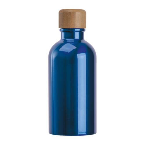 Small stainless steel drinking bottle with practical carabiner, a capacity of 400ml and a leak-proof screw cap with bamboo lid.