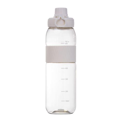Tritan drinking bottle with screw cap, non-slip silicone grip zone, and 750ml capacity.