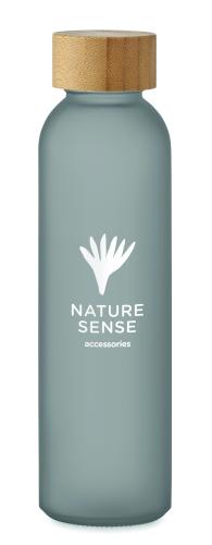 Glass bottle with frosted finish and bamboo lid. Leak-free. Capacity: 500 ml. Bamboo is a natural product, there may be slight variations in colour and size per item, which can affect the final decoration outcome.