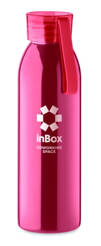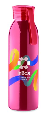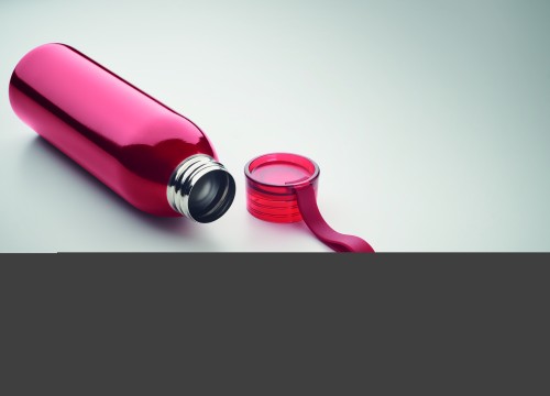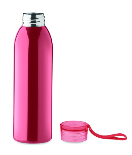 Single wall stainless steel bottle with PP lid and silicone hanger. Capacity: 650 ml. As this is a single walled bottle, heat transfer can still occur.